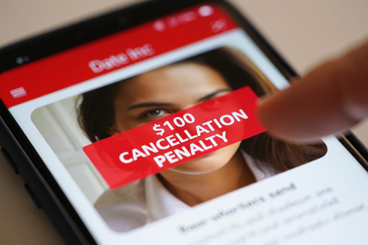 Now that's an idea worth discussing! Indeed, one Aussie singleton floated the idea of charging a $100 late cancellation fee for men who bail within 24 hours. Her logic? A lot of time, fake tan, and mascara goes into getting ready, and lame excuses shouldn’t come free. Restaurants do it. Hairdressers do it. Why can’t hopeless romantics?